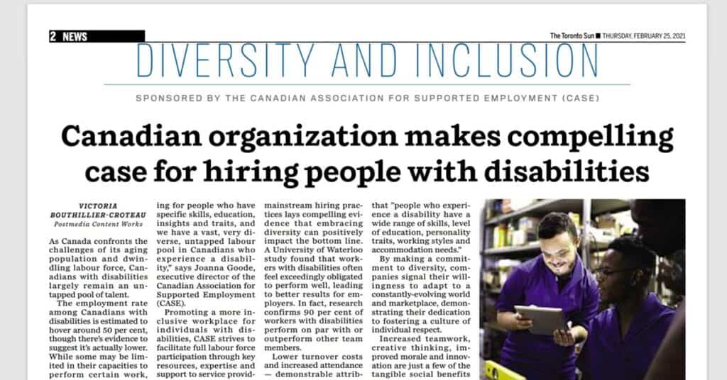 The supported employment sector in Canada is an integral part of creating an accessible and inclusive Canadian workforce.