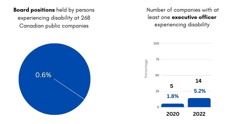 A separate 2022 study by Osler, a leading business law firm, found that 10 persons experiencing disability held board positions in the 268 public companies who disclosed this information. Those 10 positions represented just 0.6 per cent of the total number of board positions across those companies.