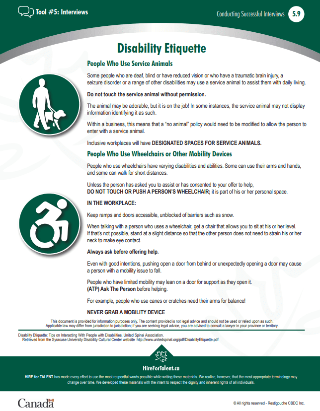 Conducting Successful Interviews: Disability Etiquette Date: March 26, 2021 By: Guest Categories: Accessibility & Universal Design, Accommodations, Best Practices, Disability Specific Workplace Inclusion, English, Innovations, Jobseeker and Employee Engagement, Publication, Supported Employment Practice, Virtual employment, Workplace Solutions Read More